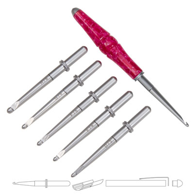 This Interchangeable Crochet Hook Kit Set includes 6 hooks: C/2 – 2.75mm; D3 – 3.25mm; E4 – 3.5mm; F5 – 3.75mm; G/6 – 4mm and H/8 – 5mm. Includes a convenient travel box to hold the handle and 9 hooks (6 hooks are included in this kit).