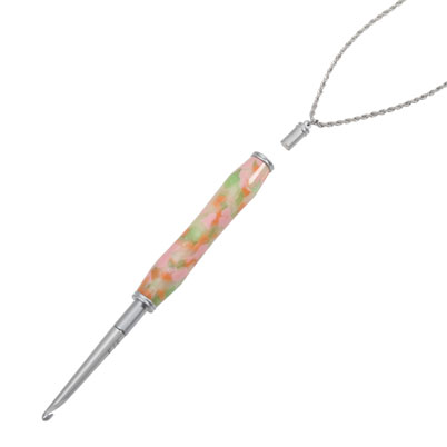 This magnetic necklace conveniently hangs your crochet hook and handle for easy access. It features a strong earth magnet, quick release clasp that conveniently releases and reattaches. Includes a 35' chain. **Hook not included.**