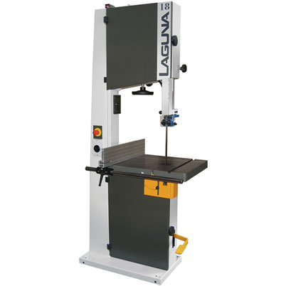 The Laguna Tools LT 18 bandsaw is the perfect step-up from the legendary LT16 HD. The larger table and increased resaw height and throat capacity open additional opportunities to show off your woodworking skills. This European saw features a 5 HP Leeson motor to provide plenty of power to match the 18-3/8" resaw height. The standard high/low resaw fence, geared trunions and EZ tension indicator make operation a breeze. Our award-¬winning Laguna Guide system features thumb screws for quick adjustment and precision control. SPECS: Motor: 5 hp Leeson 1 phase US continuous duty motor, Resaw: 18-3/8", Volts: 220, Amp Breaker: 40, Min. Blade: 1/16", Max. Blade: 1-3/8", Throat: 16-1/2", Table Size: 19" x 25", Blade Length: 158", Table Height: 33-1/2", Rack/Pinion: yes, Foot Brake: yes, Guides: Laguna Guides, Base Size: 15-3/4" x 28-1/2", Height: 77-1/2", Weight: 510 lbs.