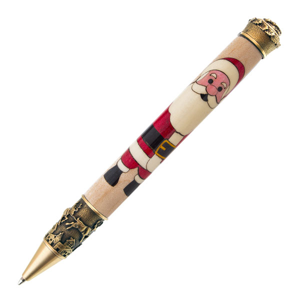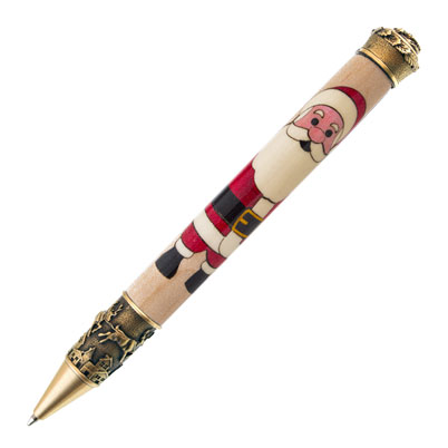 The Christmas Santa Laser Inlay Kit is a fun kit and perfect for the holiday season! This kit consists of 26 pieces, made from Holly and pink, red, yellow, and black-dyed basswood inlay on a curly maple barrel. It has been designed to fit our Exclusive Christmas Pen Kit. (PKSANTA-xx).