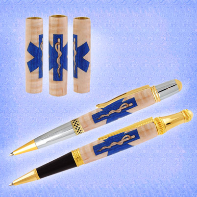 This kit could be a great gift for any emergency medical technician. The four-piece kit is made from curly maple and blue dyed basswood. Just follow the included instructions, glue and turn!