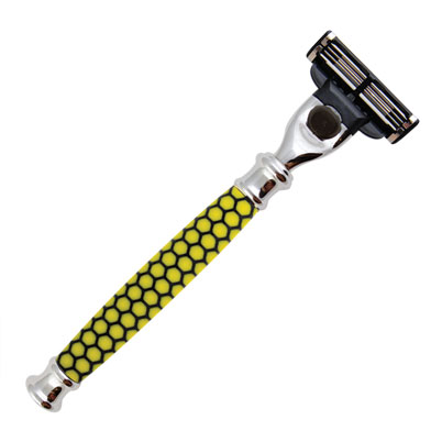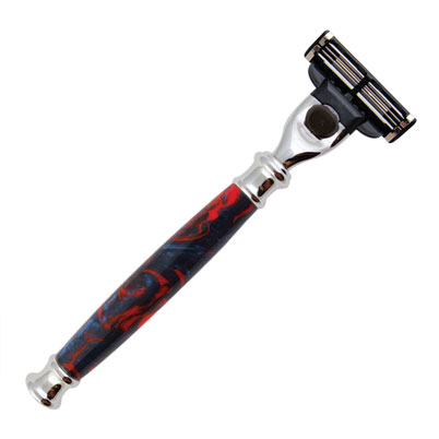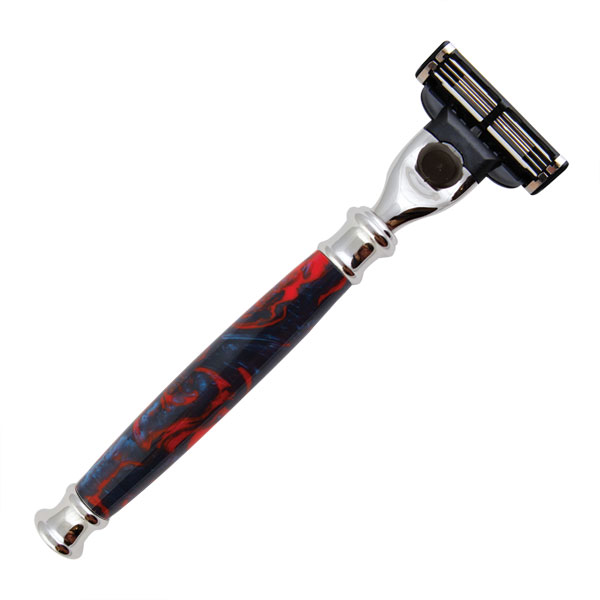 This WoodTurningz razor kit in a chrome provides a handle and razor holder. (Shown here with PBIA117 - Coral Tide). **Requires the pen blank of your choice and the popular Gillette Mach3® razor blade (not included).