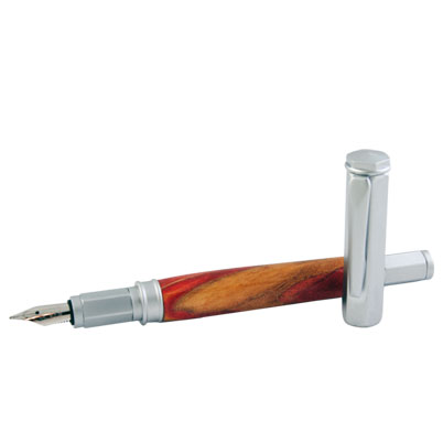 With hexagonal styling the Vertex kit is both functional and beautiful. The click pen uses a 3/8" drill bit and has a single press in cartridge that is smooth as silk. The rollerball and fountain pen versions have a convenient and stylish magnetic cap that can be used to cover the writing end, or post on the back end of the pen. The magnetic cap makes threads obsolete and increases convenience. The magnetic version uses a 10.5mm drill bit.