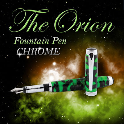 WoodTurningz Exclusive! The Orion Fountain Pen is the perfect pen that has elegant and clean styling from top to bottom. (Pictured with Genesis Blank - Mutagenic) Uses 15/32" and 25/64" drill bits as well as the PKORIONBU bushings.
