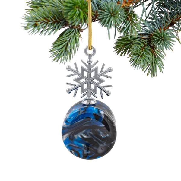 Have fun and use your creativity to create this super cute Snowflake Ornament in Chrome. This 7mm tube kit is easy-to-turn and assemble. **Note: this was turned from a 1.5" wide inlace spindle blank (Inlace #110 Blue Steel).