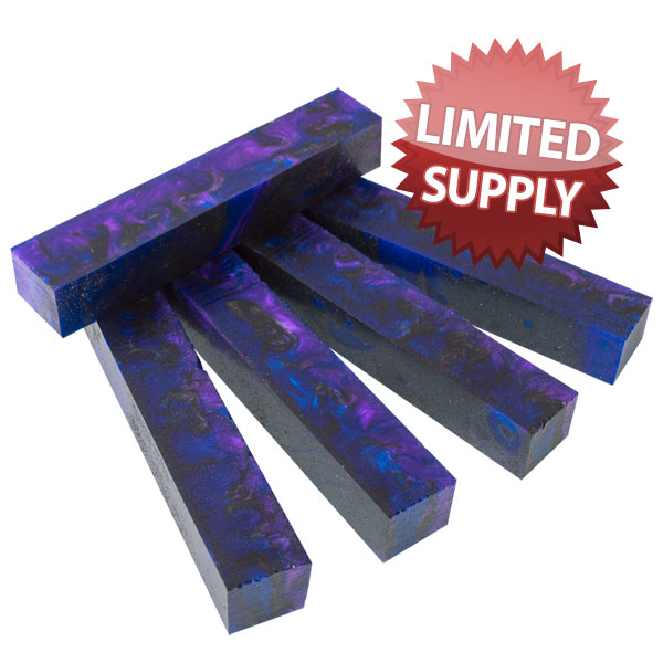 PBIAXX152 - Tanzanite is a nice mix of black, purple, and bright blue that would pair well with any pen finish! We only have a limited supply so don't delay! WoodTurningz is proud to manufacture Inlace Acrylester Blanks! It is sized at 3/4" square by 5" long.