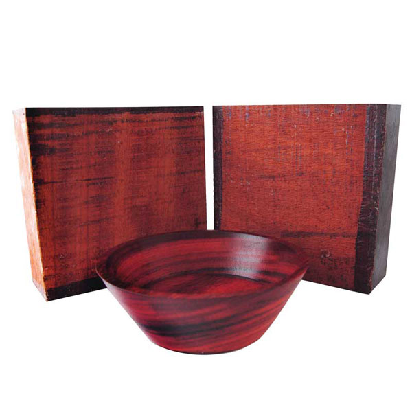 Padauk turns and polishes great! It is an excellent turning hardwood with coarse grain and color ranging from purple-red to orange-red. This bowl blank is sized at 6 x 6 x 2".
