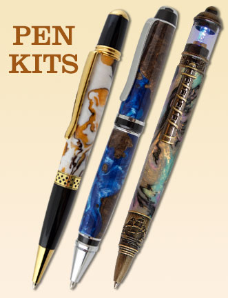 WoodTurningz' 8 Piece barrel trimming kit has everything you want in a trimmer. You get *BOTH* a 5/8" and 3/4" HSS cutters (allowing you to set up two sizes at once), Pilot bores in 7mm, 8mm, 10mm, 3/8" and 27/64".