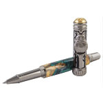Grab your spyglass and cast your eyes on these beauties! Our exclusive Pirate rollerball kit in chrome is uniquely designed from top to bottom. The pirate-skull cap posts on the rear of the pen which features wide threads to prevent cross-threading. The pirate theme is completed with a crisscrossed sword pen clip and coin centerband.