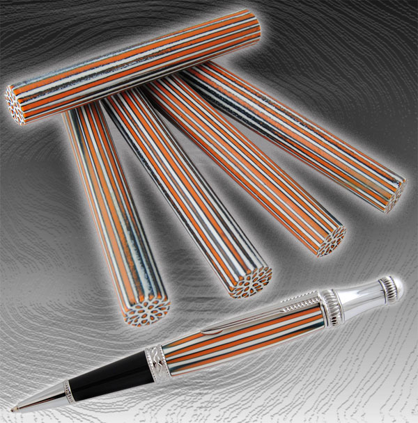 Tiger Lilly is made up of orange, white and black stripes that run lengthwise along the blank.