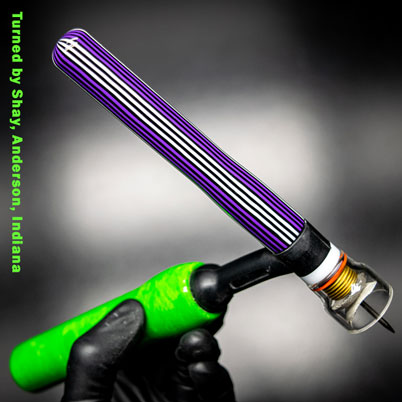Blackberry is made up of violet, black and white stripes that run lengthwise along the blank.