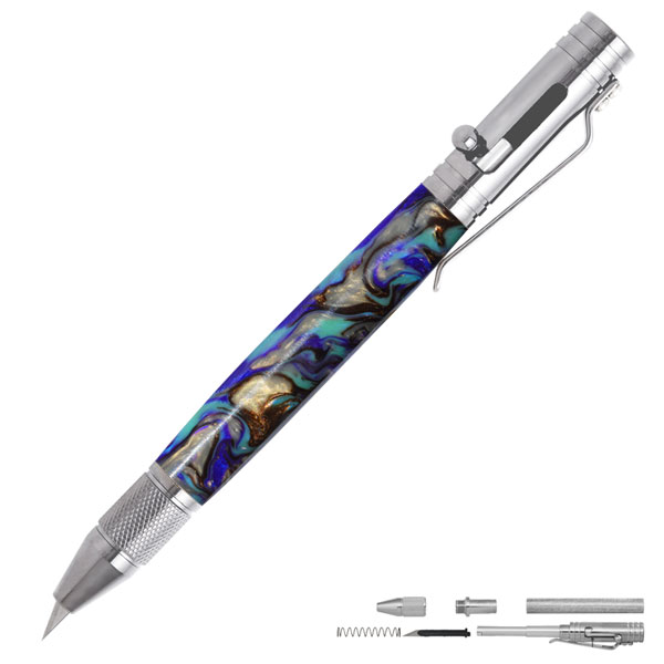 The Precision Bolt Action Chrome Hobby Knife is an exceedingly useful and adaptable craft knife featuring a bolt action mechanism that both propels and securely withdraws the blade to ensure safety. The sharp and precise #65 cutting blade is excellently suited for intricate tasks such as precise cutting, stenciling, scoring, and trimming. It performs exceptionally well on a wide array of materials including paper, film, plastic, cork, wax, clay, vinyl, cardstock, and more. This tool is perfect for various hobbies and artistic activities like scrapbooking, model kits, and paper crafts. The package includes a set of two razor-sharp #65 Excel retractable blades, proudly manufactured in the USA.