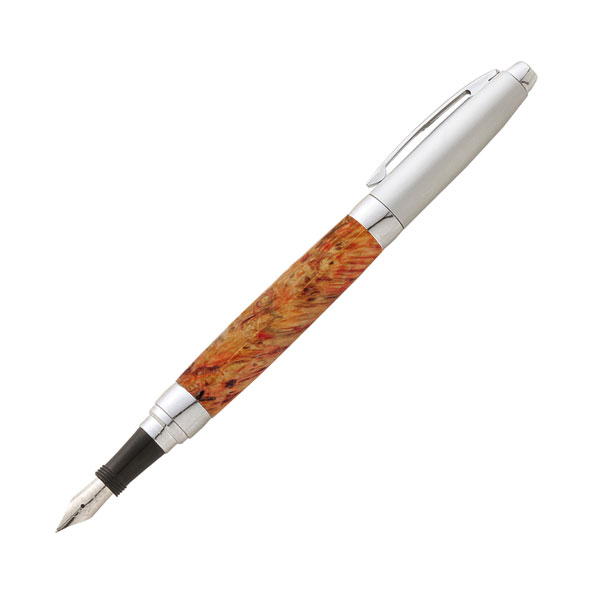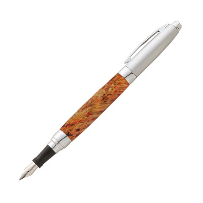 If you love the ease and elegance of single tube pens, then you'll love the Presimo ™ Fountain pens. The metal cap on the Presimo ™ simply presses on the pen end to post and screws onto the pen nib end to close. The etched pen top and lustrous chrome go well with most wood and acrylic blanks. It's affordably priced and easy to make requiring a single 10mm tube. Ideal for the turner on a budget who's looking to create a higher-end Fountain pen.