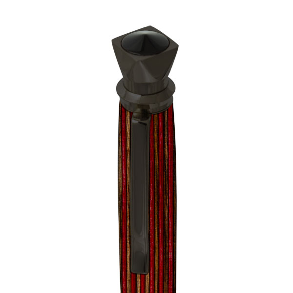 Discover Royalty in Every Stroke of the Regalia Pen Kit. Shown here in Black Chrome. It showcases a faceted top adorned with a black cabochon accent fit for a king or queen. The nib features a stately design that is ergonomic and upscale. Regalia’s one-tube design makes it easy to turn and press together. Use wood, acrylic, or our Inlace Acrylester blanks to create a noble creation that will be used and loved for years. A Parker refill ensures smooth and clean ink flow.