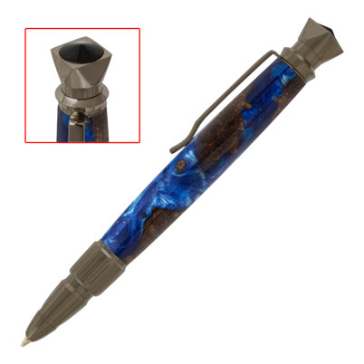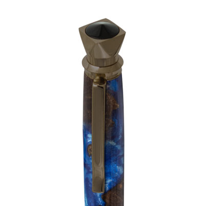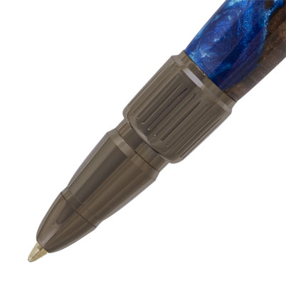 This pen kit is shown on a Hybridz - Blue Chechen pen blank.
