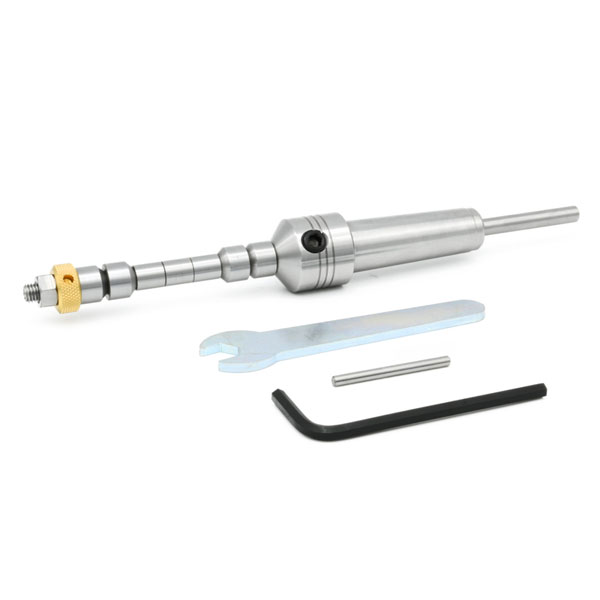 The Rotur Universal Pen Mandrel Kit features an adjustable shaft that allows the user to turn either one or two pen parts at a time. The kit is supplied with a shaft and spacers for 7mm pen kits, and cones to accept larger pen kits. The kit also includes a lock-nut kit for larger blanks. Fits 2MT Made in the UK by Planet Plus LTD.