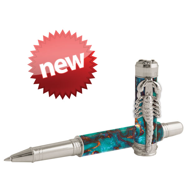Make a statement with our exclusive Scorpion Pen Kit, that features a curved segmented tail and a stunning scorpion on the clip. The center band of the pen is encircled with centipedes, adding to the intrigue of this pen. With its striking design and attention to detail, the Scorpion Pen is sure to turn heads and make a great conversation starter.