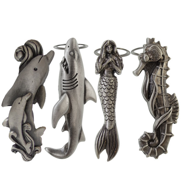 Maximize your design options with this four pack of Antique Pewter Sea Life Clips. Each pack includes one each of the Dolphin, Sea Horse, Mermaid and Shark design. The clips are easily interchangeable on the pen body with no tools.