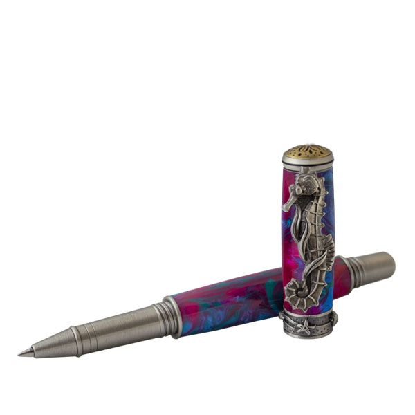 Enhance your WoodTurningz Sea Life pen kit to extraordinary levels of elegance with an exquisite custom pen clip. Among the four remarkable choices, the Sea Horse pen clip shines as an absolute masterpiece. Impeccably crafted with meticulous attention to detail and boasting a handsome antique pewter plating, this clip effortlessly captures the very essence of a sea horse, bringing a touch of mesmerizing realism and undeniable sophistication to your pen.