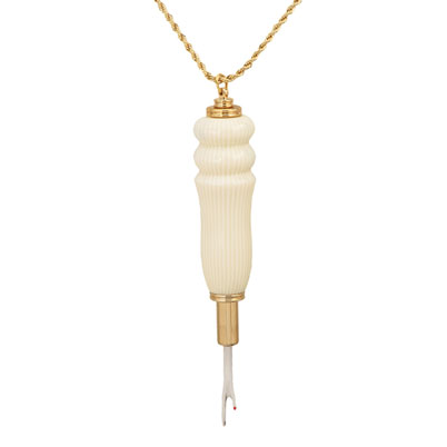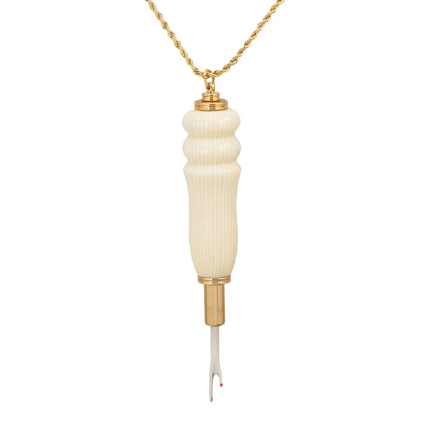 The Seam Ripper 24kt Gold Necklace Kit is a really handy item! For quick access, it has a magnetic clasp and hangs from a 36" rope chain with a matching finish.