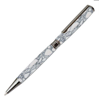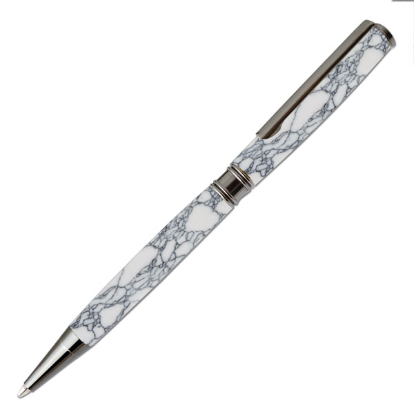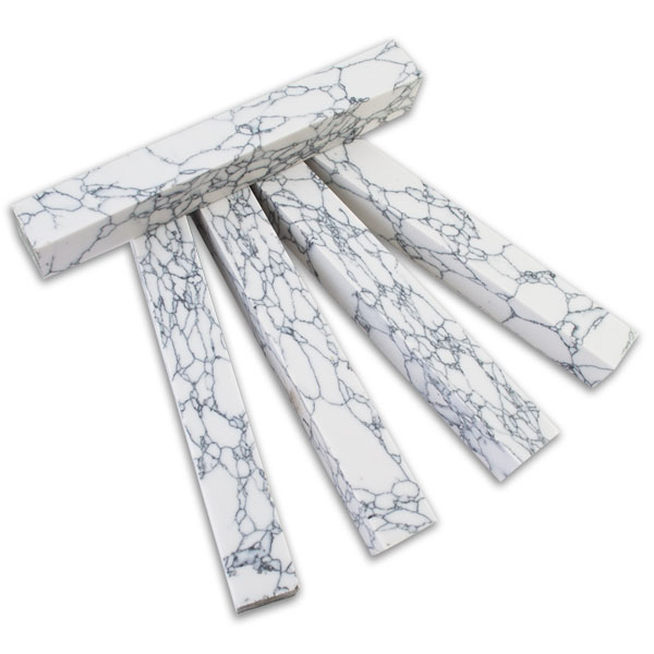 SimStone #04 - White Marble blanks are a reconstituted stone but the end product resembles genuine stone. It turns easily and is similar to an acrylic material. Sand and finish your finished project with acrylic finishing products like the #PKFINKIT sanding system and One-Step plastic polish.
