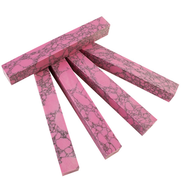 SimStone #05 - Pink Marble blanks are a reconstituted stone but the end product resembles genuine stone. It turns easily and is similar to an acrylic material. Sand and finish your finished project with acrylic finishing products like the #PKFINKIT sanding system and One-Step plastic polish.
