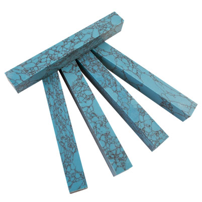 SimStone #06 - Turquoise blanks are a reconstituted stone but the end product resembles genuine stone. It turns easily and is similar to an acrylic material. Sand and finish your finished project with acrylic finishing products like the #PKFINKIT sanding system and One-Step plastic polish.