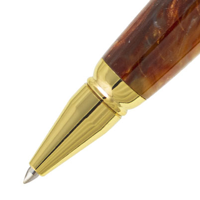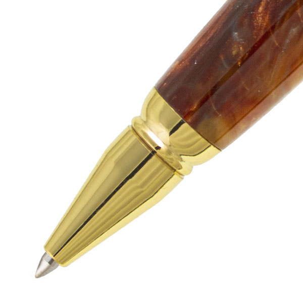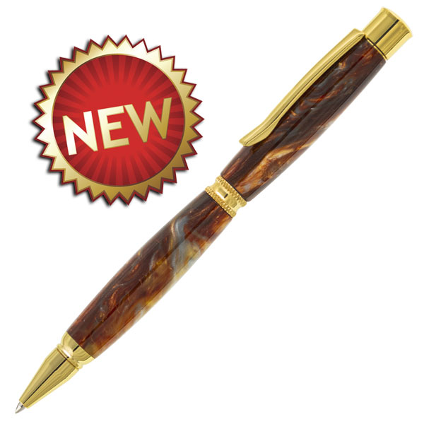 Presenting the new Slimline Elite Pen Kit in a bright gold finish! This kit retains the size of the classic Slimline while adding a touch of sophistication with a double-knurled center band that exudes style. The larger end cap enhances its upscale presentation, making it a standout piece. Easy to turn and press, just like the original Slimline, this pen kit is perfect for both beginners and seasoned pen makers looking to create a refined writing instrument. Elevate your pen-making experience with the Slimline Elite!