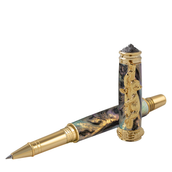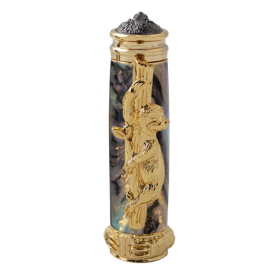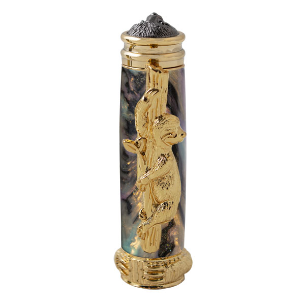 Chill out with your Sloth Rollerball Pen Kit in Gold! It displays his cute face on top, Sloth hanging from a branch on the clip and his front paws wrapping around the centerband. This unique kit is a WoodTurningz exclusive. The cap posts on the rear of the pen which features wide threads to prevent cross-threading.