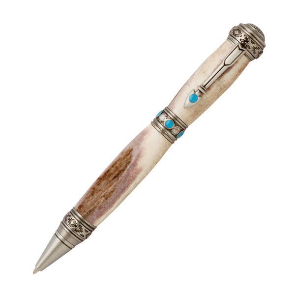 This pen is perfect for anyone wanting a pen with an American Southwestern flair! This kit features a Desert Mesa flower on the top of the pen and a stylized arrow clip. The finish is a quality brass plating and chemically darkened it to simulate aged pewter.