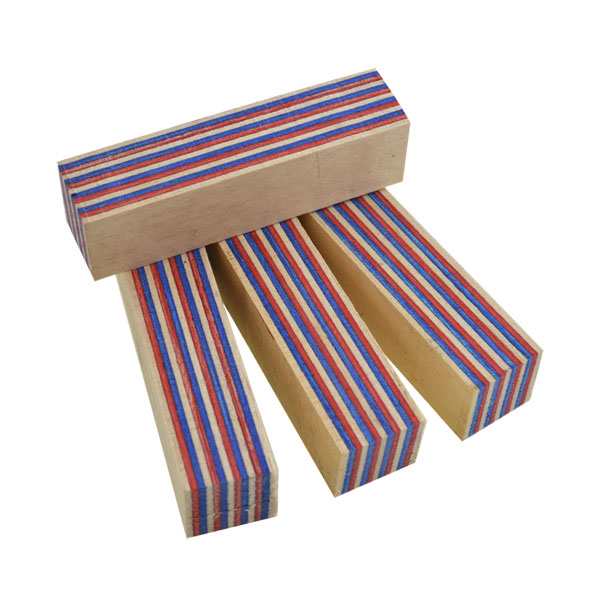 Americana short pen blank showcases a captivating array of colors, carefully arranged in alternating layer patterns of natural tone, vibrant red and deep blue dyed woods. The result is an exquisite blend of hues that truly captivate the eye.