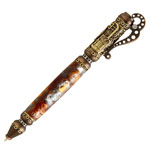 Inspired by the Steampunk genre, this pen gives you a feeling of both old and new technology combined. The pen extends and retracts using a steam pump-action click mechanism. The end of the pen features a Victorian clock surrounded by gears and pipes - incorporating ornate detail. The pen tip is decorated with leaf trim and has a waist with machined through-holes that give a view into the inside of the pen. The pen clip is curved, machined and precision-engineered with routed edges, through-holes, and rivets. Easy-to-make with a single 10mm tube and includes a smooth writing Parker style refill.