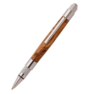 The Stratus Click Pen in chrome has a modern design that allows for a larger barrel which shows off more of your turned blank. This kit uses the same smooth action, quiet mechanism found in the Vertex click pen.