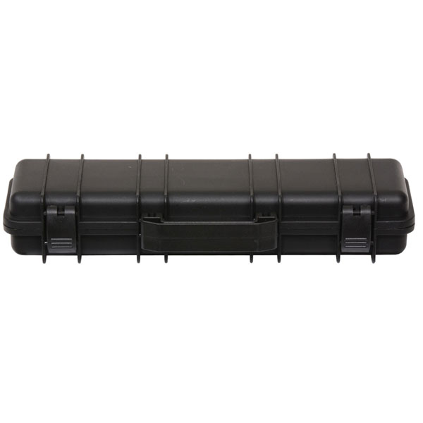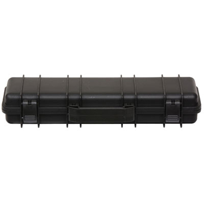 The Tactical Rifle Case Pen Box in Black replicates a real rifle case. It has a sleek tactical ribbed exterior (which is made from high-quality injection molded polymer) and has a dense foam interior insert to fit a single pen. In addition, it has two working clasps and a hinged handle for a secure closure. Fits bullet pens of any size. Sized at 6 3/8" x 1 5/8" and 1" tall.