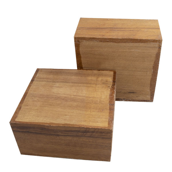 Teak 6 x 6 x 3" Bowl Blank. This wood is easy to work with. These blanks are a nice golden - medium brown but can darken with age. Despite its natural oils, Teak glues and finishes well.