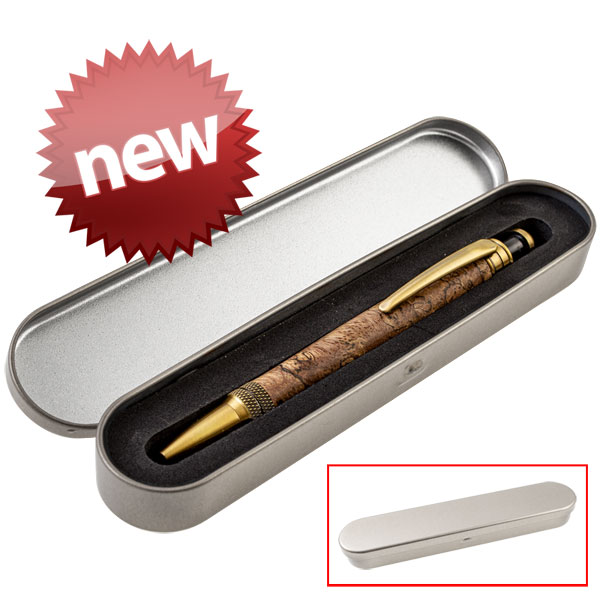 Elevate the presentation of your handcrafted pens with our silver-finished Tin Pen Box. This box features a premium foam insert that ensures the secure housing of your finest writing instruments. The hinged lid effortlessly stays closed, thanks to the built-in indent, adding an element of sophistication to this exceptional pen box. This stylish and practical accessory offers an upscale aesthetic while remaining remarkably affordable. Experience the perfect blend of elegance and affordability with our remarkable Tin Pen Box.