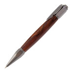 That’s the Vertex pen! Sleek, intersecting metal facets create this chic pen cap and tip showing off the pen body you’ve created in wood or acrylic. The click pen uses a 3/8" drill bit with a one-piece click mechanism, while the rollerball and fountain pen versions offer a magnetic cap (think no more threads!) that posts on the back end of the pen. Architecturally, the Vertex is just plain cool!
