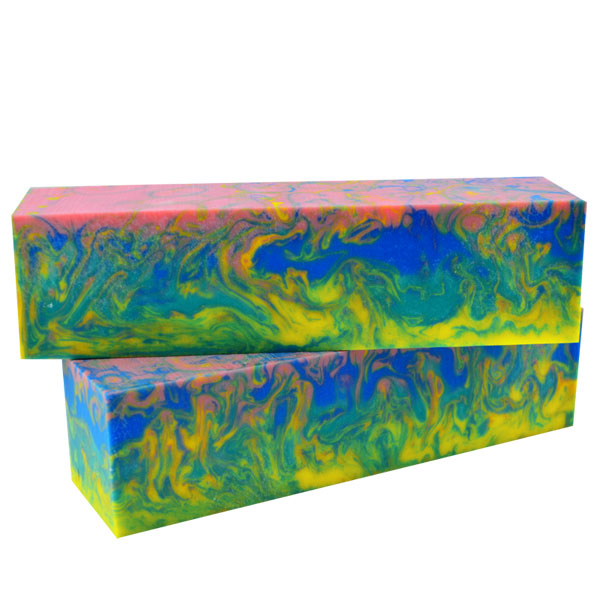 Pastel Dream is a unique color is made up of pastel yellow, blue, pink, and green swirls. These spindle blanks are 1.5" x 1.5" x 6". **1.5" x 1.5" x 12" spindles in this color are also available. If interested, please call 888-736-5487.**