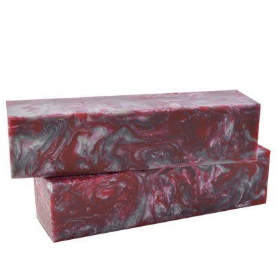 These crimson and silver spindle blanks are 1.5" square by 6" long and will work well for all of your larger projects. **1.5" x 1.5" x 12" spindles in this color are also available. If interested, please call 888-736-5487.**