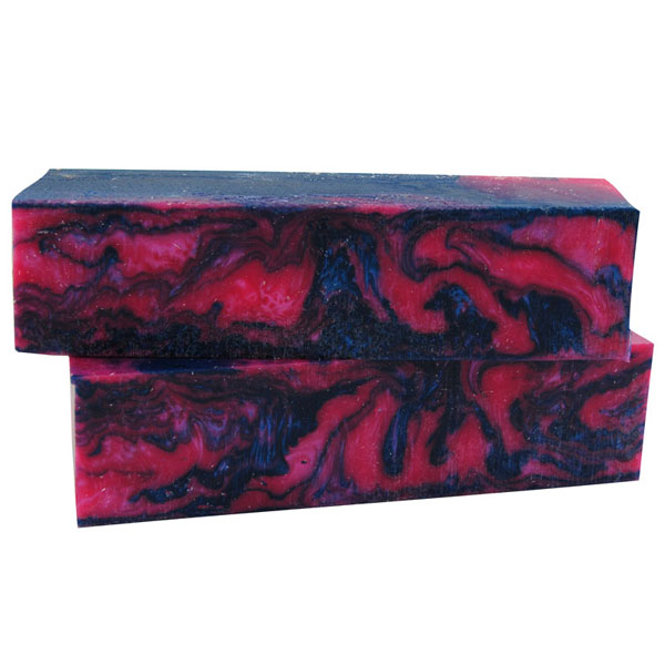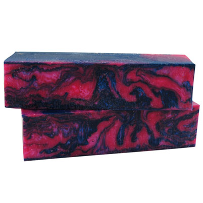#66 Jelly Roll is made up of pink and dark blue color tones swirled together. These spindle blanks are 1.5" square by 6" long and will work well for all of your larger projects.