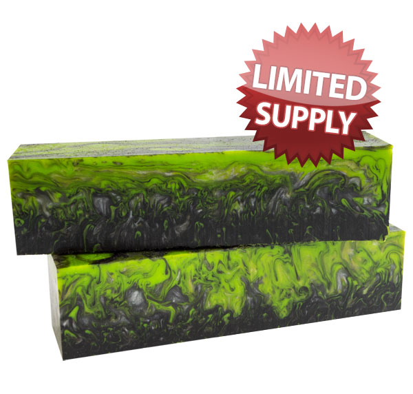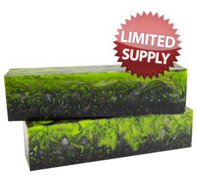These limited-batch spindles are made up of a great combination of green, black with a layer of silver! The blanks are 1-1/2" x 1-1/2" by 6" long and will work well for your larger projects.