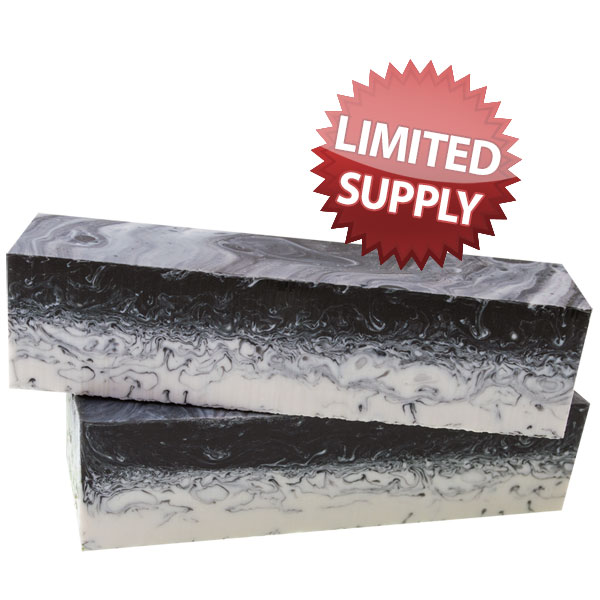 WBIAXX24 Tuxedo Twist is a limited batch spindle blank. This color is made up of black and white pearl. We only have a limited supply. WoodTurningz is proud to manufacture Inlace Acrylester Blanks! Size is 1-1/2" square by 6" long